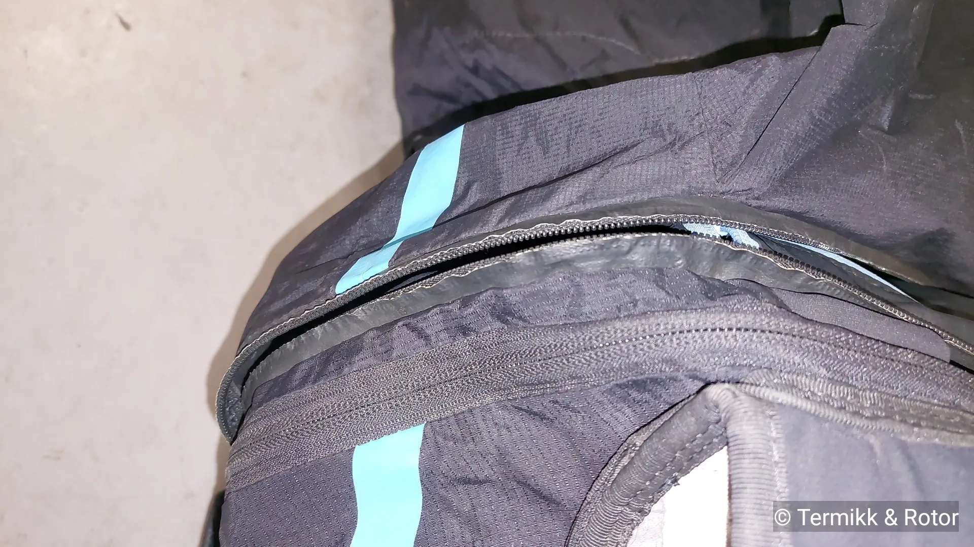 Litt slitasje på "membranen" ved glidelåsen til bagasjerommet. Dette er forventet slitasje når man åpner og lukker glidelåsen en del.