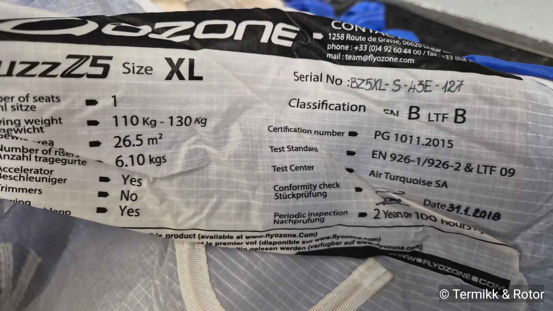 Linesettet på vingen er oppgitt av eier til å være flydd omtrent 90 timer, vi har ingen informasjon om hvor mye vingen har vært groundhandlet. Basert på informasjonen vi har skal linesettet i teorien ha omtrent 160 timer gjenværende levetid. Vår vurdering av tilstanden til linesettet har det som utgangspunkt.
