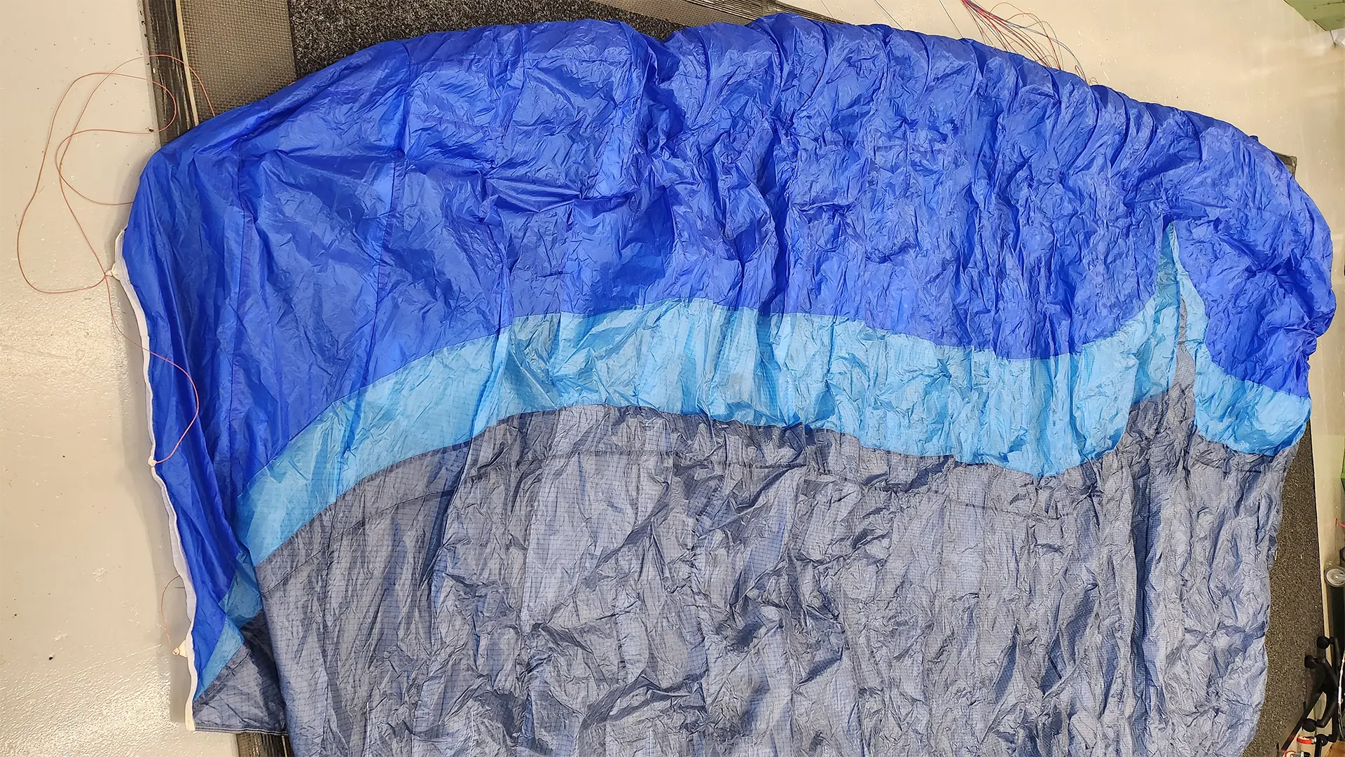 Rivestyrken til toppduken er målt omtrent 100 cm fra vingens front i celle L2 hvor dukens farge er blå.