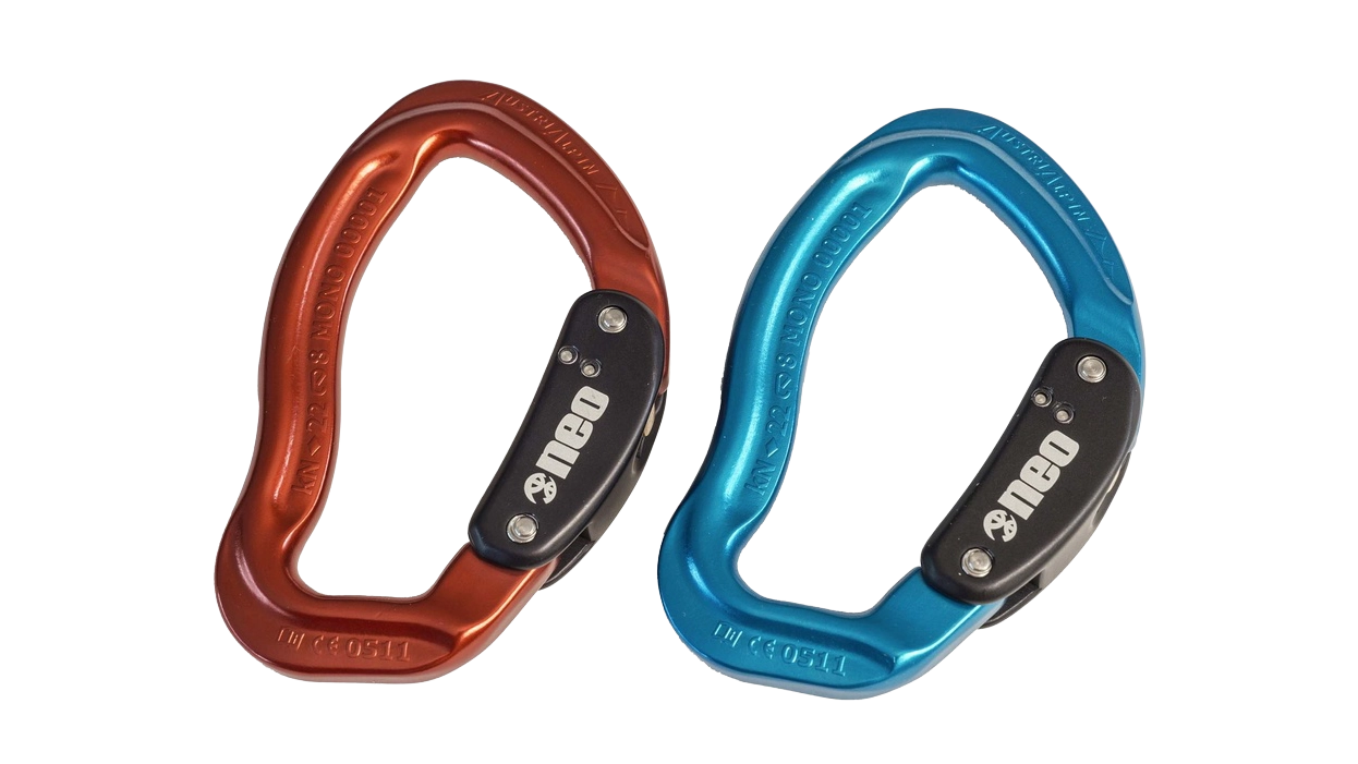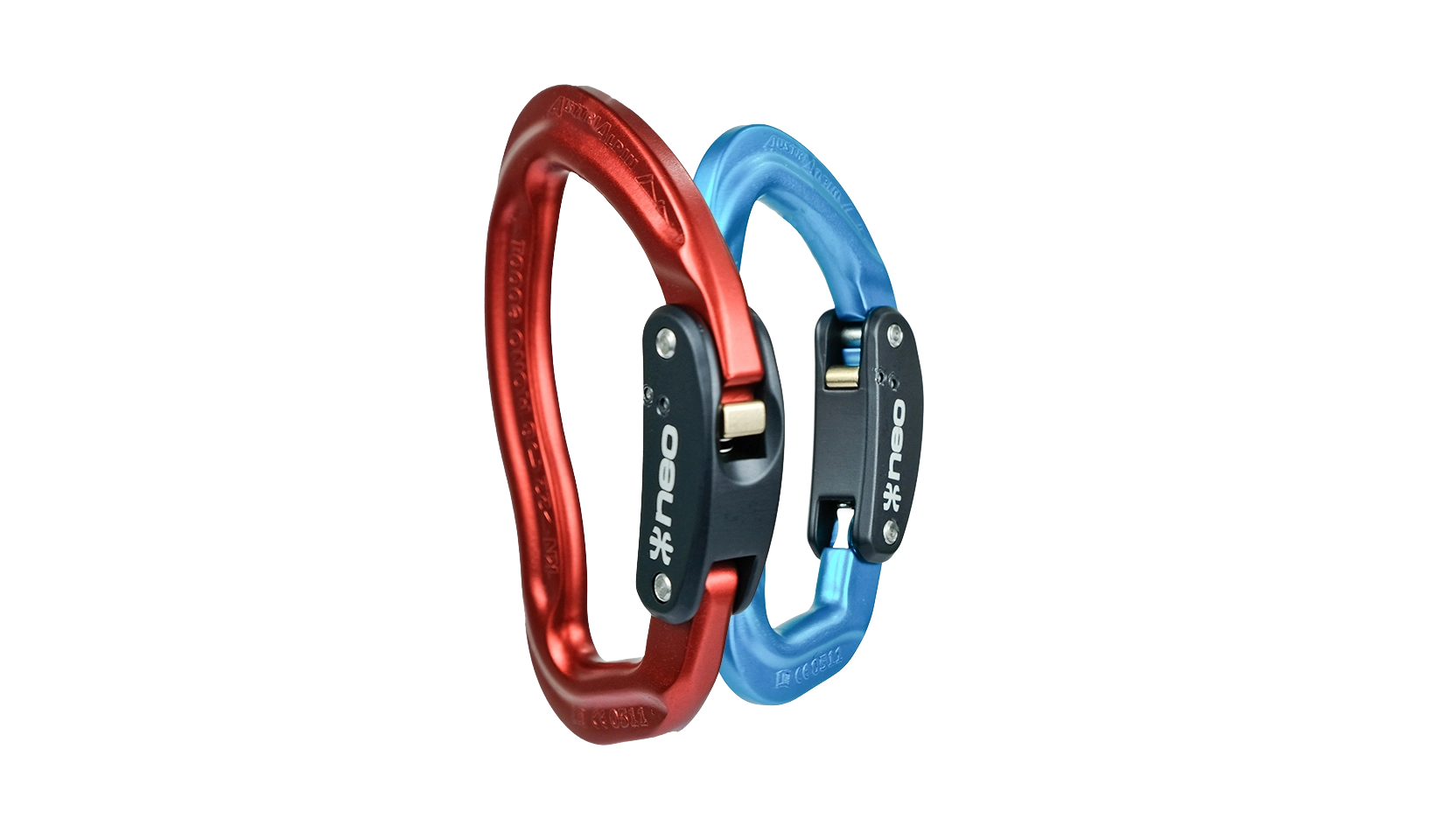 Sett med lette aluminiumskarabinere med autolås, spesifikt utviklet for paragliding av NEO og AustriAlpin. Rød for babord og blå(!) for styrbord.