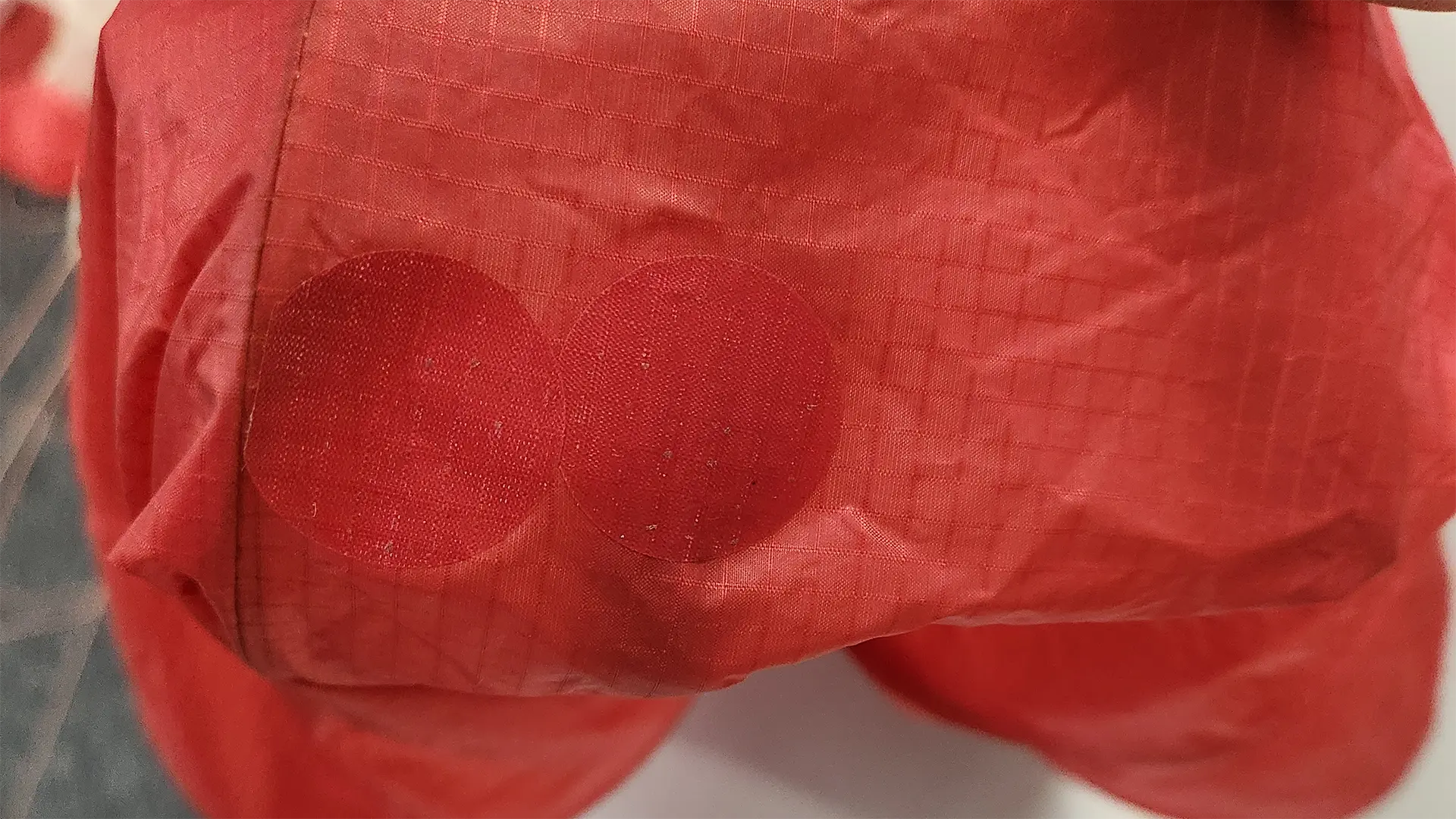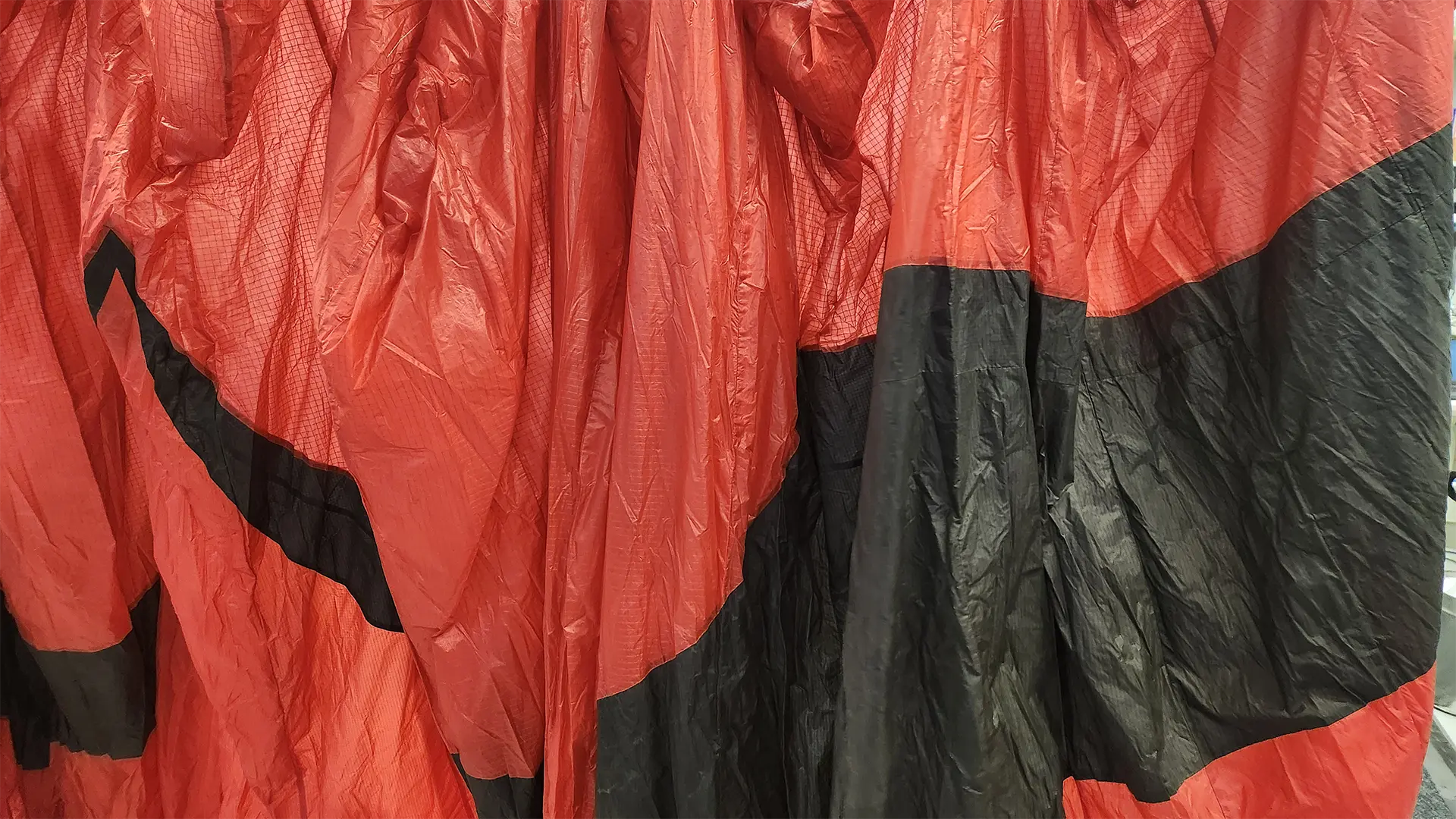 Duken ser generelt fin ut, den har 2 hull i toppduken ved leading edge i celle 9 som er reparert med matchende ripstop.