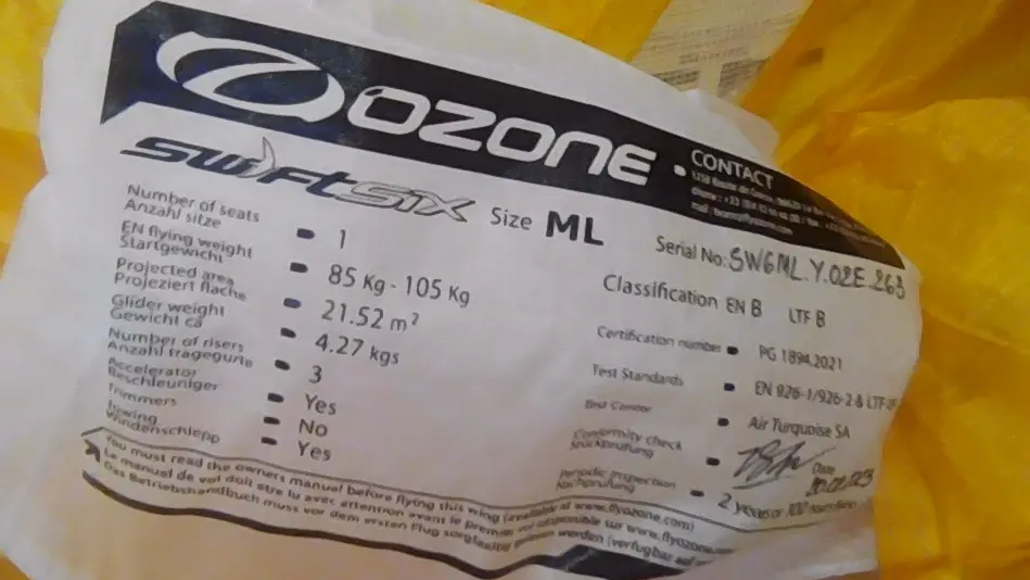 Linesettet på vingen er oppgitt av eier til å være flydd omtrent 150 timer, vi har ingen informasjon om hvor mye vingen har vært groundhandlet. Basert på informasjonen vi har skal linesettet i teorien ha omtrent 100 timer gjenværende levetid. Vår vurdering av tilstanden til linesettet har det som utgangspunkt.